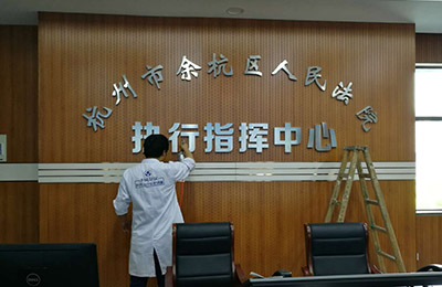 余杭人民法院位于 浙江省杭州市余杭區世紀大道,室內辦公室總面積為1200平方,為新裝修辦公場所。室內主要以密度板辦公家具為主,其會議室墻壁都是密度板條形裝飾,是室內的主要污染源。