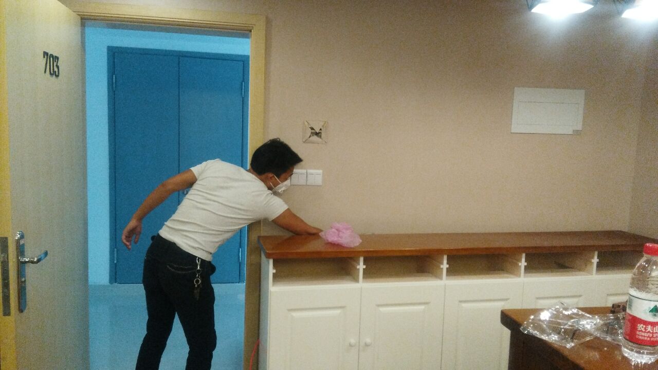 治理方案及施工:公司針對(duì)其房屋結(jié)構(gòu)特點(diǎn)及污染情況,我公司技術(shù)及施工人員采用專項(xiàng)治理的施工方案,針對(duì)其墻體立面(墻紙)、沙發(fā)、櫥柜等污染源表面使用我公司自主研發(fā)的利純納米光觸媒進(jìn)行甲醛清除,采用高壓霧化噴涂的方法,最大限度消除室內(nèi)的甲醛污染,對(duì)于重新刷漆的家具、門、書架、衣柜等采用甲醛清除劑進(jìn)行處理,對(duì)于床底部位則使用生物酶異味清除劑,針對(duì)不同污染物,做全面治理,治理后的室內(nèi)環(huán)境達(dá)到國(guó)家規(guī)定的室內(nèi)空氣質(zhì)量指標(biāo)范圍內(nèi),業(yè)主對(duì)我公司的治理給予充分肯定。下面為施工現(xiàn)場(chǎng)照片: